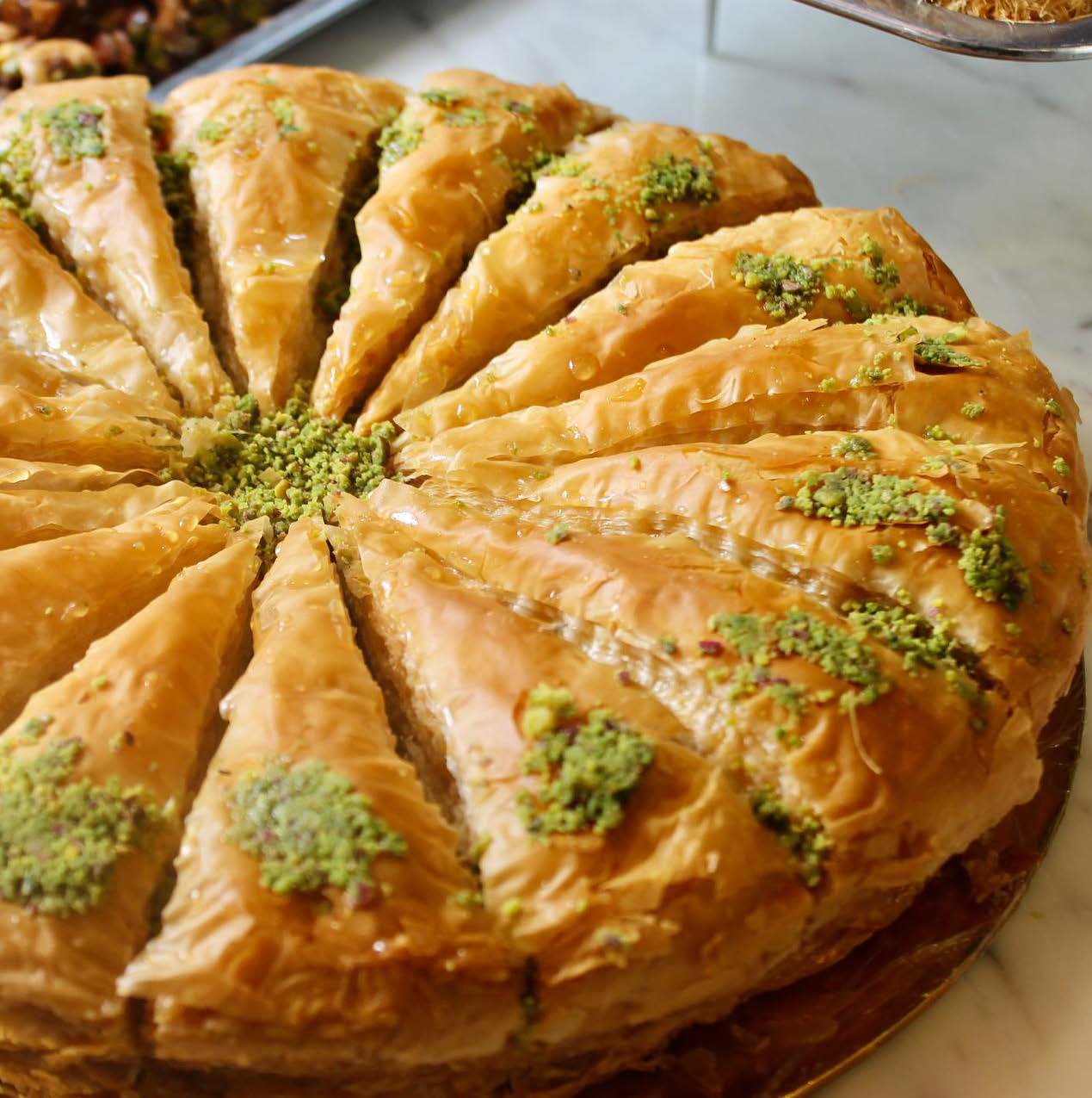 Fine layers of light & crispy dough filled with crushed pistachios